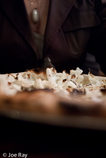 Next to the lamb, we’d ordered a pizza – this is a pizzeria, after all – and maybe because it was next to something so spectacular, our pie was the evening’s only relative whiff. The ‘Tracy Patty’ pie features tasty mozzarella, ricotta, lip-smacking boquerones (vinegar-drenched anchovies), garlic and savoy cabbage, but it lacked some juicy agent like tomatoes or more of that amazing olive oil to shuttle each slice it to its final home.